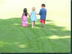 Elena, Erin and Carlos enjoy some time walking in the grass…