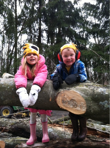 daddy cut down a very large tree near the house. The limbs and branches provided hours of entertainment for all.